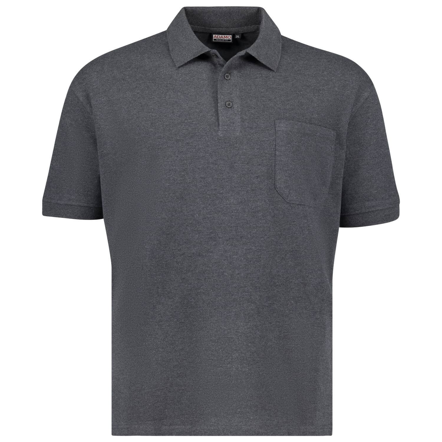 Adamo graues herren polo shirt mit kurzer Knopfleiste und Brusttasche aus weichem Material