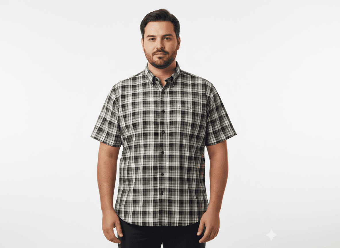 Karo Kurzarmhemd in Übergröße – perfekt für großformatige Passformen mit hohem Tragekomfort und zeitlosem Design.