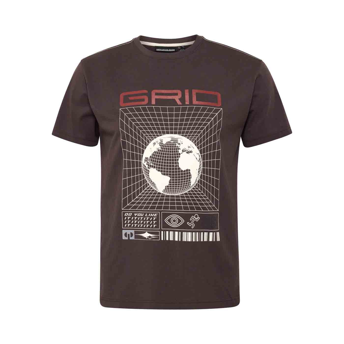 Allsize T-Shirt Übergröße Herren in Braun mit GRID Druck und Erde Grafik